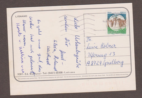 AK Lignano. Gelaufen. Großformat. Verlag: Mattiussi. Nummeriert: 9501. Zustand: stärker verschmutzt.