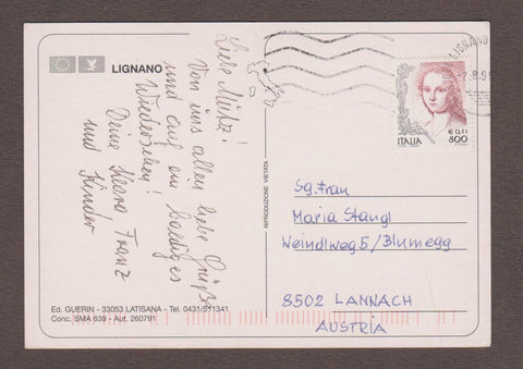 AK Lignano. Gelaufen. Großformat. Verlag: Guerin. Zustand: rechtes unteres Eck angeknickt, sonst leichte Läsuren.