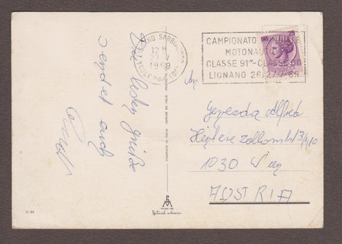AK Lignano. Gelaufen 1969. Großformat. Nummeriert: LI 84. Zustand: Ecken geknickt, Knick in Bildmitte.