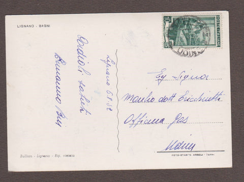 AK Lignano - Bagni. Gelaufen. Großformat. Verlag: Bullian. Zustand: gut, rechtes unteres Eck geknickt.