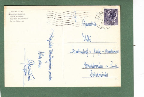 AK Lignano Bagni. Lungomare da Pineta. Gelaufen 1965 in Lignano Sabbiadoro. Großformat. Nummeriert: 526. Zustand: linkes oberes Eck geknickt, andere Ecken leicht angestoßen, am rechten Rand in der oberen Hälfte vergilbt, Stempeldrucklinien.