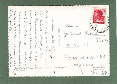 AK Lignano Camping Pineta. Gelaufen 1961. Großformat. Verlag: Paolini & Guerin, Latisana – Lignano. Zustand: gut, leicht fleckig, geringe Läsuren.
