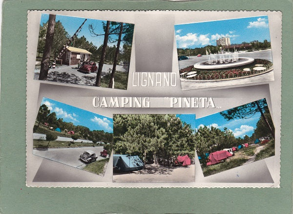 AK Lignano Camping „Pineta“. Gelaufen. Großformat. Nummeriert: 27. Zustand: gut, leichte Randläsuren.