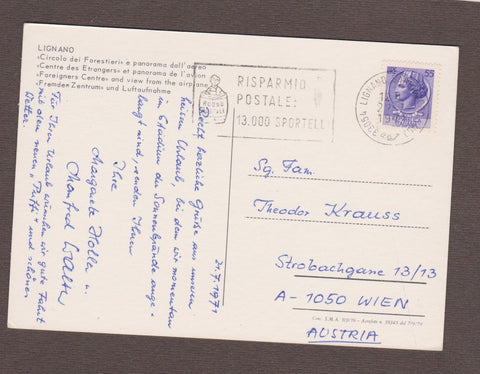 AK Lignano. Circolo dei Forestieri e panorama dall'aereo. Gelaufen 1971. Großformat. Zustand: gut, rechtes unteres Eck leicht geknickt.