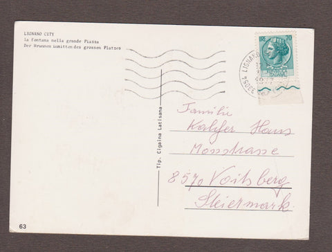 AK Lignano City. La fontana nella grande Piazza. Gelaufen 1977. Großformat. Verlag: Cigaina. Nummeriert: 63. Zustand: Ecken geknickt bzw. angeknickt.