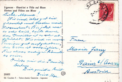 AK Lignano - Giardini e Ville sul Mare. Gelaufen. Großformat. Verlag: Candeo. Nummeriert: 20808. Zustand: gut.