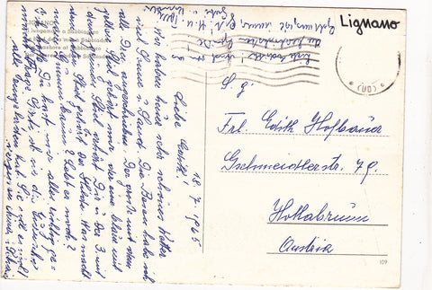 AK Lignano. Il Lungomare a Sabbiadoro. Gelaufen 1965, aber Briefmarke wurde entfernt. Großformat. Nummeriert: 109. Zustand: gut.
