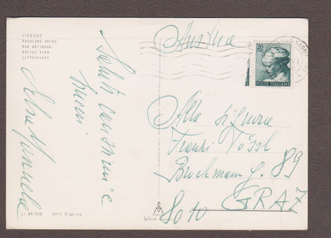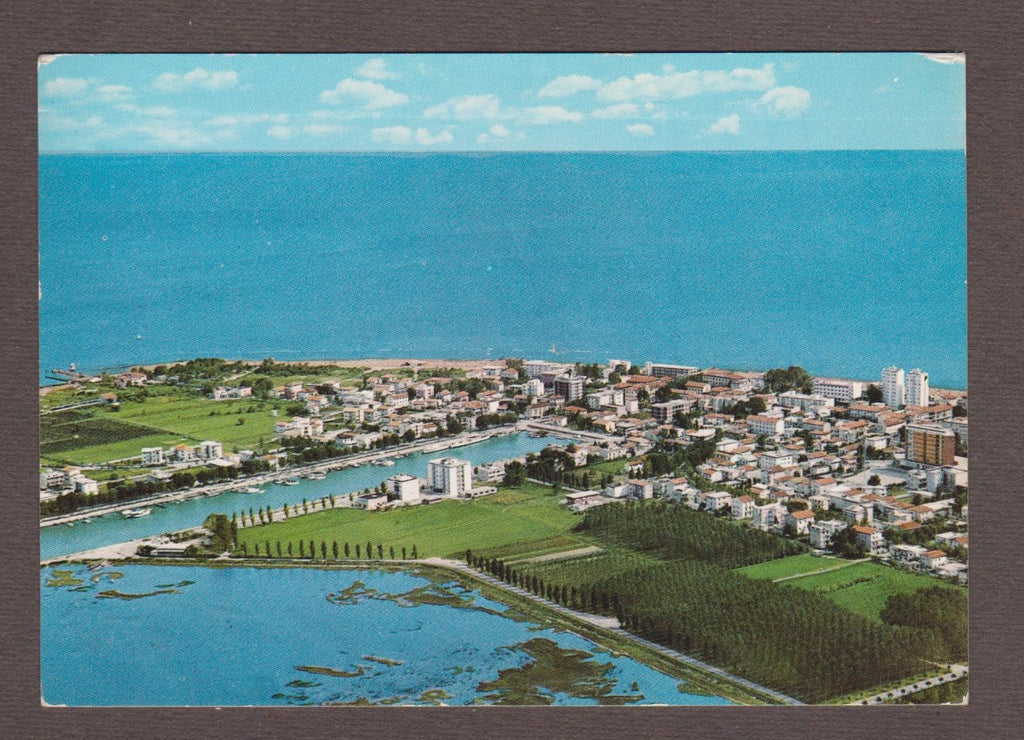 AK Lignano. Panorama aereo. Gelaufen. Großformat. Verlag: Cigaina. Nummeriert: LI 69/220. Zustand: gut, rechtes oberes Eck angeknickt.
