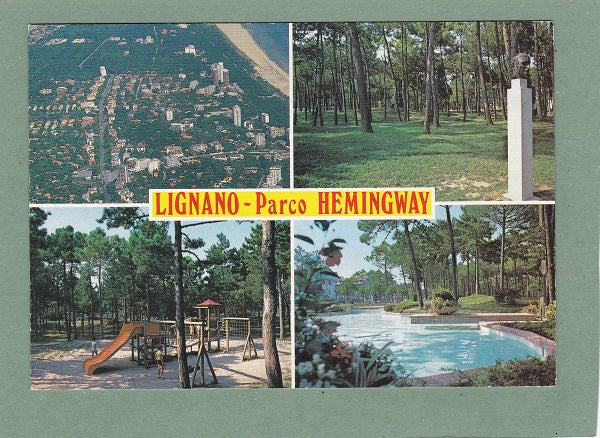 AK Lignano – Parco Hemingway. Gelaufen 1997. Großformat. Verlag: ok. Zustand: Ecken geknickt bzw. angestoßen, leichte Kratzer, Knick am unteren Rand etwas links vom rechten Eck.