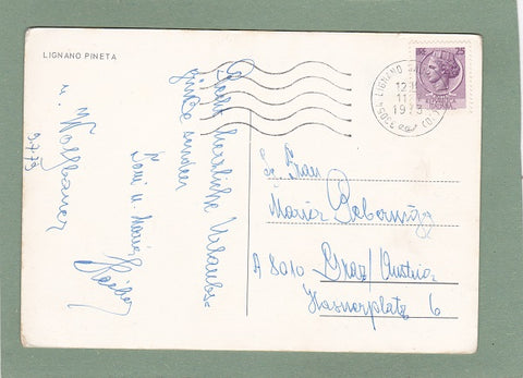 AK Lignano Pineta. Gelaufen 1973 in Lignano Sabbiadoro. Großformat. Zustand: Ecken und am Rand bestoßen.