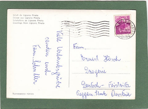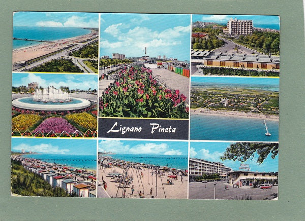 AK Lignano Pineta. Gelaufen 1962 in Lignano Sabbiadoro. Großformat. Zustand: Ecken bestoßen bzw. geknickt, am unteren Rand etwas bestoßen mit Einriss ca. 2mm.