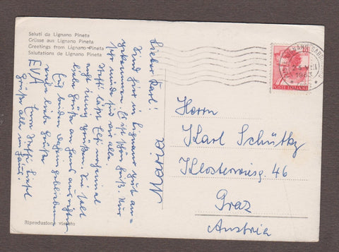 AK Lignano Pineta.Gelaufen 1963. Großformat. Zustand: gut, leichte Randläsuren.