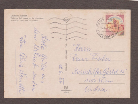 AK Lignano Pineta. Gelaufen 1984. Großformat. Verlag: Cigaina. Zustand: in oberer Bildhälfte mehrere kleine Stecknadeldurchstiche.