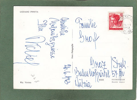AK Lignano Pineta. Gelaufen 1963. Großformat. Nummeriert: 69443. Zustand: linkes oberes Eck geknickt, rechtes oberes Eck angeknickt, sonst O.k.