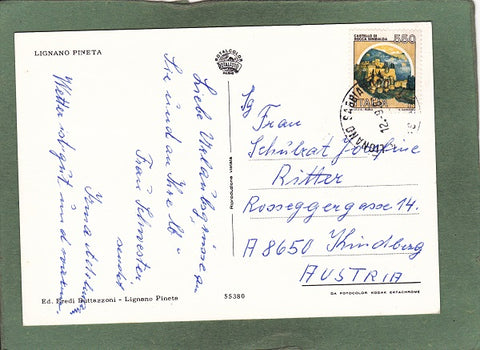 AK Lignano Pineta. Gelaufen. Großformat. Verlag: Rotalfoto. Nummeriert: 55380. Zustand: linkes oberes Eck geknickt, Knick am linken Rand in der unteren Hälfte, sonst O.k.