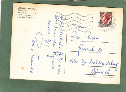 AK Lignano Pineta. Dall'aereo. Gelaufen. Großformat. Zustand: an Ecken und am Rand etwas angestoßen, leicht stofffleckig, sonst O.k.