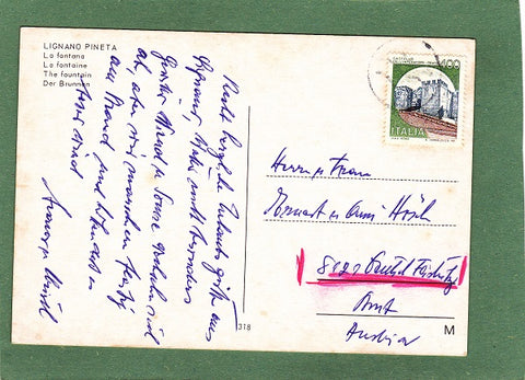 AK Lignano Pineta. La Fontana. Gelaufen. Großformat. Nummeriert: 318. Zustand: rechtes unteres Eck geknickt bzw. bestoßen, sonst O.k.