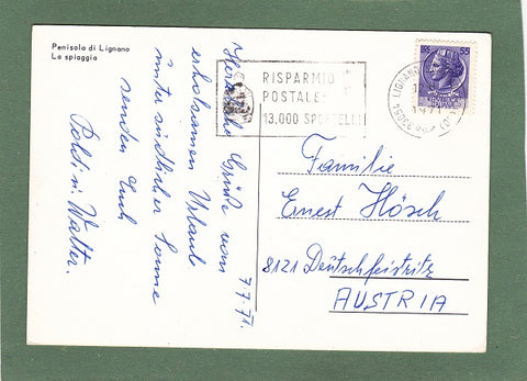 AK Lignano Pineta. Gelaufen 1971 in Lignano Sabbiadoro. Großformat. Zustand: Ecken etwas bestoßen bzw. angeknickt, am Rand leicht bestoßen.