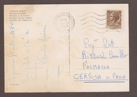 AK Lignano Pineta. Panorama dall'aereo. Gelaufen 1967. Großformat. Nummeriert: LS 88/226. Zustand: stofffleckig, sonst leichte Läsuren.