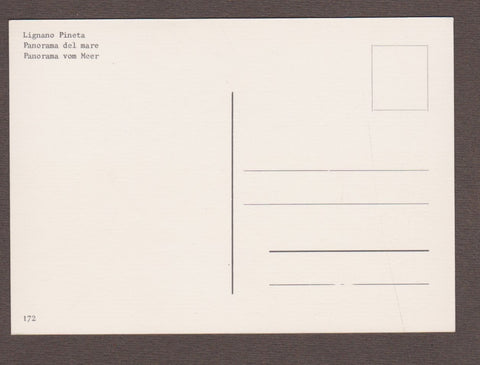 AK Lignano Pineta. Panorama del mare. Ungelaufen. Großformat. Nummeriert: 172. Zustand: gut, linke Ecken wenig angestoßen.