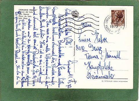 AK Lignano Pineta. Piazza del Sole. Gelaufen 1972. Großformat. Verlag: Buttazoni. Nummeriert: 40962. Zustand: gut, nur leichte Randläsuren.