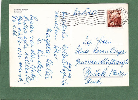 AK Lignano Pineta. Solarium. Gelaufen 1966 in Gorizia. Großformat. Nummeriert: 73/163. Zustand: Ecken etwas bestoßen, obere Ecken geknickt.