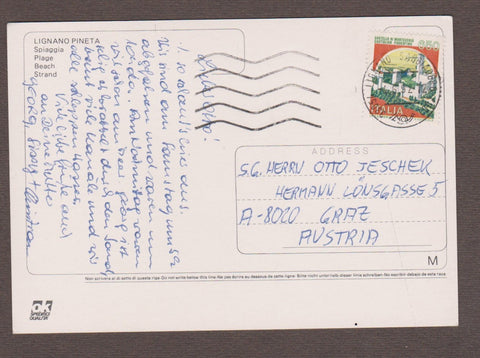 AK Lignano Pineta. Spiaggia. Gelaufen. Großformat. Zustand: gut.