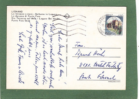 AK Lignano Riviera Adriatica. Gelaufen. Großformat. Verlag: Cigaina Latisana. Zustand: linkes unteres Eck geknickt, andere Ecken leicht angeknickt.