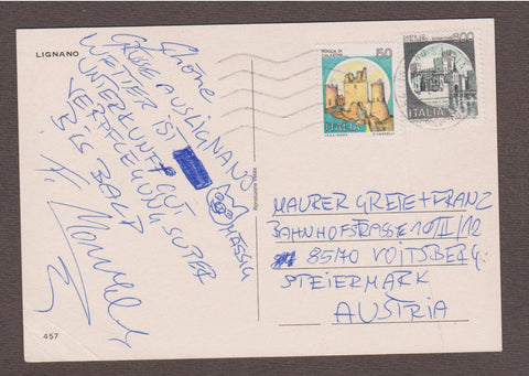 AK Lignano Sabbiadoro. Gelaufen. Großformat. Nummeriert: 457. Zustand: rechtes unteres Eck mehrfach geknickt, Knicke über der linken Bildhälfte.