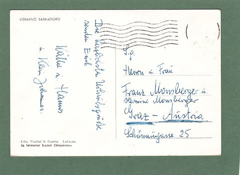 AK Lignano Sabbiadoro. Gelaufen, aber Briefmarke wurde entfernt. Großformat. Verlag: Paolini & Guerin Latisana. Zustand: Ecken mit leichten Läsuren, etwas knittrig, sonst O.k.