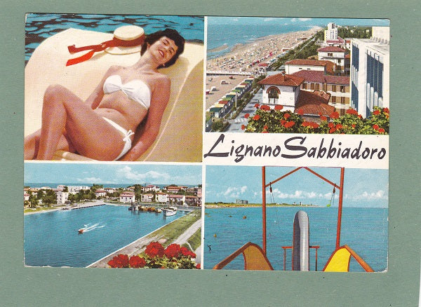 AK Lignano Sabbiadoro. Gelaufen 196? in Lignano Sabbiadoro. Großformat. Verlag: GM. Nummeriert: 31. Zustand: Ecken leicht angestoßen, rechtes unteres Eck geknickt und am rechten Rand in unterer Hälfte etwas bestoßen, sonst O.k.