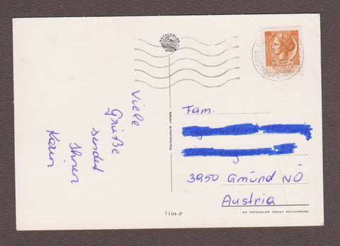 AK Lignano Sabbiadoro. Gelaufen 1979. Großformat. Nummeriert: 7104-F. Zustand: linkes oberes Eck geknickt, andere Ecken angeknickt.