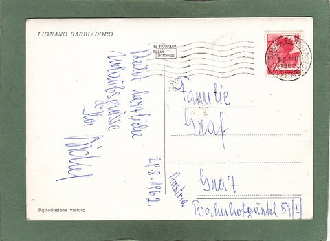 AK Lignano Sabbiadoro. Gelaufen 1962. Großformat. Zustand: gut, linkes unteres Eck geknickt, sonst leichte Läsuren.