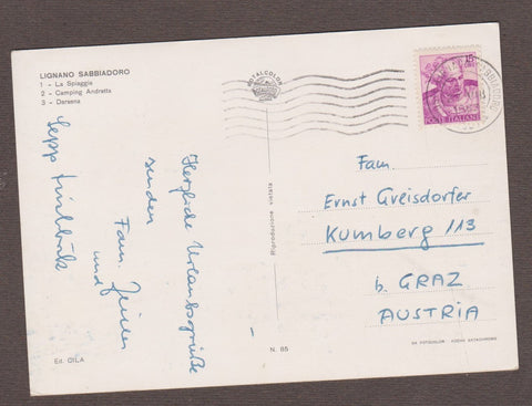 AK Lignano Sabbiadoro. Gelaufen 1963. Großformat. Verlag: CILA. Nummeriert: 85. Zustand: Oberfläche stark knittrig.