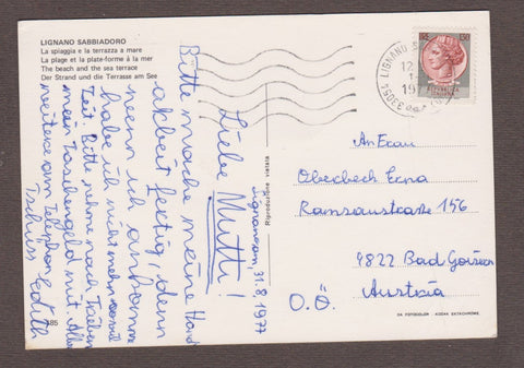 AK Lignano Sabbiadoro. Gelaufen 1977. Großformat. Nummeriert: 185. Zustand: stärker bestoßen.