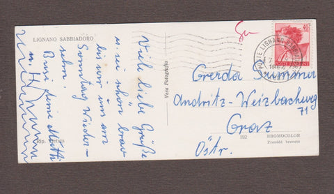AK Lignano Sabbiadoro. Gelaufen 1964. Extrakleinformat. Nummeriert: 192. Zustand: kleiner Stecknadeldurchstich im linken oberen Eck, sonst O.k.