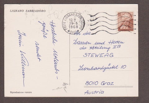 AK Lignano Sabbiadoro. Gelaufen 1968. Großformat. Zustand: obere Ecken geknickt, sonst O.k.