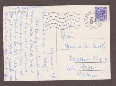 AK Lignano Sabbiadoro. Gelaufen 1972. Großformat. Zustand: am rechten Rand kleiner Einriss ca. 2mm, sonst leichte Läsuren.