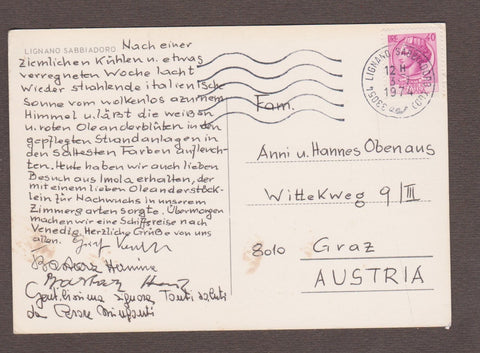 AK Lignano Sabbiadoro. Gelaufen 1974. Großformat. Zustand: Ecken angeknickt, Knicke.