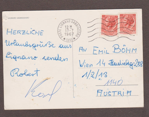 AK Lignano Sabbiadoro. Gelaufen 1967. Großformat. Zustand: rechte Ecken geknickt, leichte Kratzer.