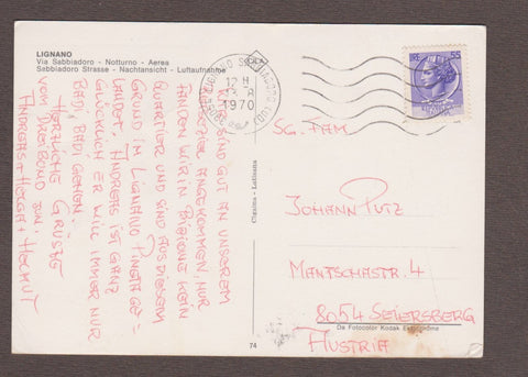 AK Lignano Sabbiadoro. Gelaufen 1970. Großformat. Verlag: Cigaina. Nummeriert: 74. Zustand: stark bestoßen.