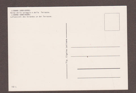 AK Lignano Sabbiadoro: Aerea della spiaggia e della Terrazza. Ungelaufen. Großformat. Verlag: Cigaina. Nummeriert: 152 L. Zustand: gut.
