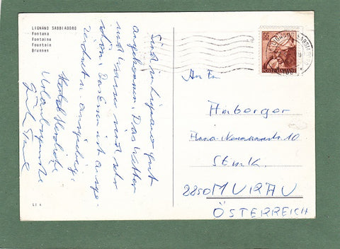AK Lignano Sabbiadoro. Fontana. Gelaufen 1966 in Lignano Sabbiadoro. Großformat. Zustand: linkes oberes Eck angeknickt, rechtes unteres Eck geknickt, andere Ecken leicht angestoßen, Stempeldrucklinien, sonst O.k.