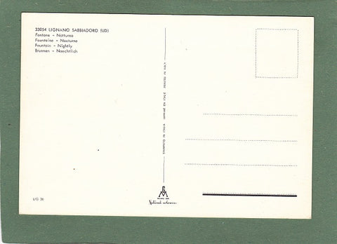 AK Lignano Sabbiadoro. Fontana – Notturno. Ungelaufen. Großformat. Verlag: GM Milano. Nummeriert: 36. Zustand: Ecken angeknickt bzw. angestoßen, sonst leichte Randläsuren.