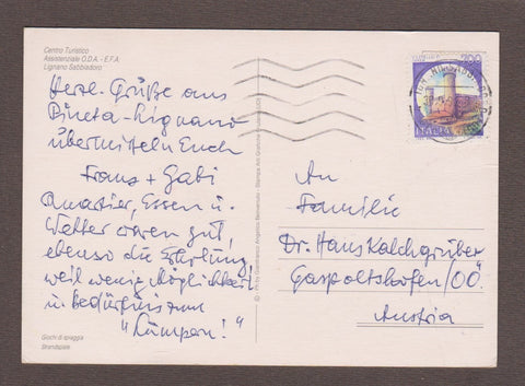 AK Lignano Sabbiadoro. Giochi di spiaggia. Centro Tursitico Assistenziale O.D.A. - E.F.A. Gelaufen. Großformat. Verlag: Benvenuto. Zustand: rechtes unteres Eck geknickt, linkes oberes Eck leicht geknickt, sonst O.k.
