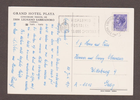 AK Lignano Sabbiadoro, Grand Hotel Playa. Lungomare Trieste 128. Gelaufen 1971. Großformat. Zustand: gut.