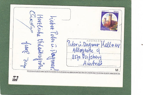AK Lignano Sabbiadoro. … il sole è con noi. Ungelaufen, aber beschrieben und mit Briefmarke. Großformat. Zustand: linke Ecken geknickt, am unteren Rand beim rechten Eck etwas angestoßen.