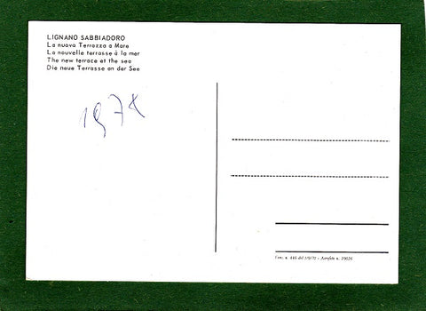 AK Lignano Sabbiadoro. La nuova Terrazza a Mare. Ungelaufen. Datum vermerkt 1978. Großformat. Zustand: gut, untere Ecken leicht angeknickt.