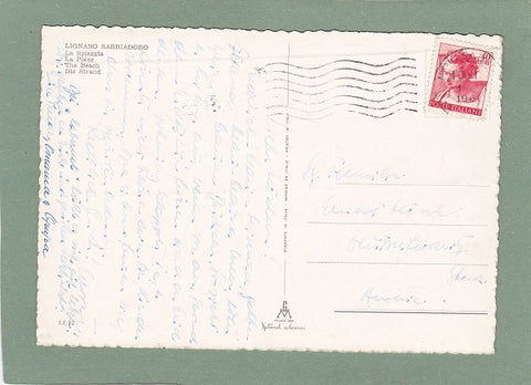 AK Lignano Sabbiadoro. La Spiaggia. Gelaufen 196? in Lignano Sabbiadoro. Großformat. Verlag: GM Milano Nummeriert: 12. Zustand: rechtes unteres Eck geknickt, sonst leichte Randläsuren, Stempeldrucklinien.
