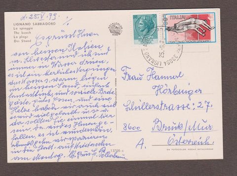 AK Lignano Sabbiadoro. La Spiaggia. Gelaufen 1979. Großformat. Nummeriert: 13700-c. Zustand: gut.